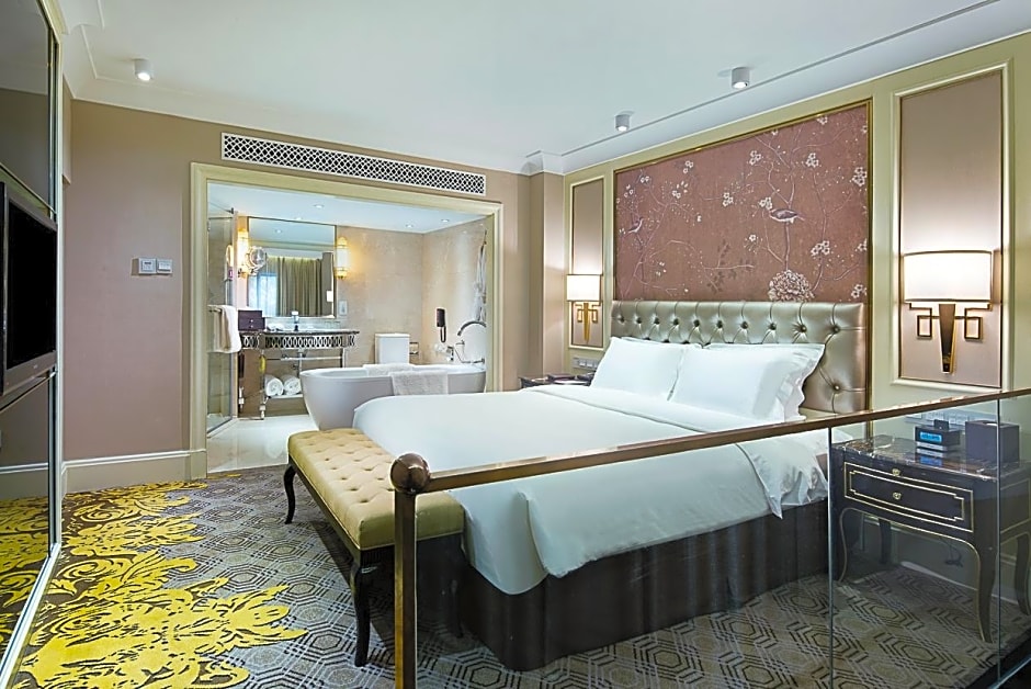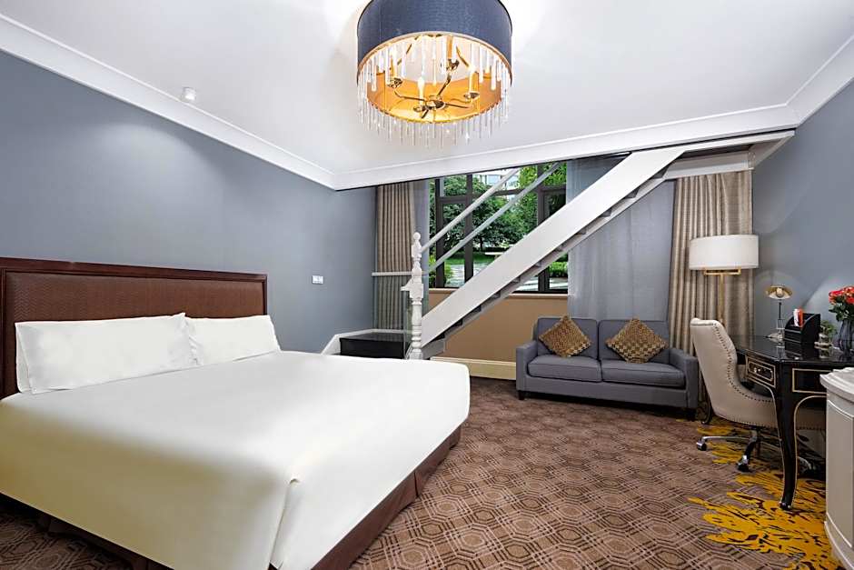 1 King Junior Suite Loft Lounge access is 592 square feet and includes a king-size bed 150-183 width plus extra beds on demand, hairdryer, safe, and bathrobes.